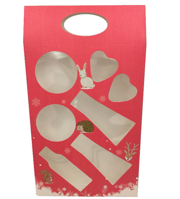 รูปแบบกล่อง: กล่องกระดาษมีหูจับแบบไดคัทพร้อมหน้าต่าง PVC ใส