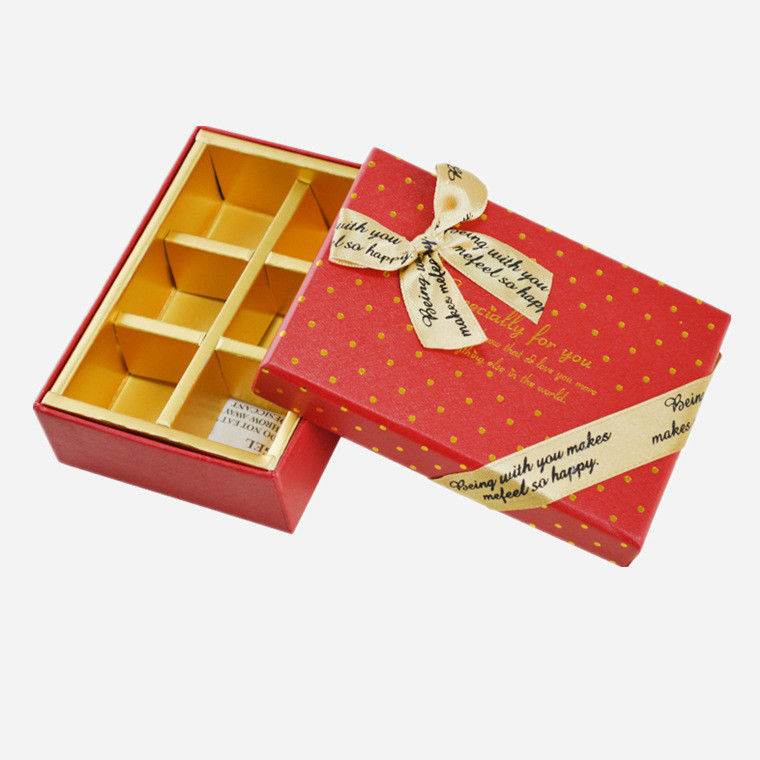 กล่องบรรจุภัณฑ์ช็อกโกแลตกระดาษสี่เหลี่ยมพิมพ์ UV พร้อมบรรจุภัณฑ์ริบบิ้น
