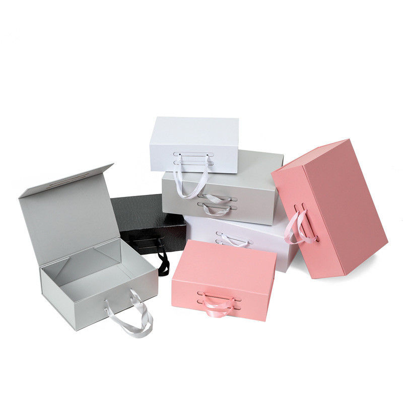 กล่องของขวัญแม่เหล็กแบบพับได้และยุบได้พร้อมริบบิ้นผ้าไหม