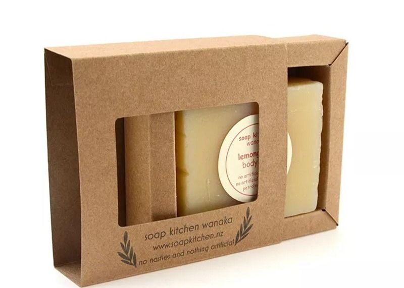 กล่องสบู่ทําด้วยมือที่มีหน้าต่างโปร่งใส