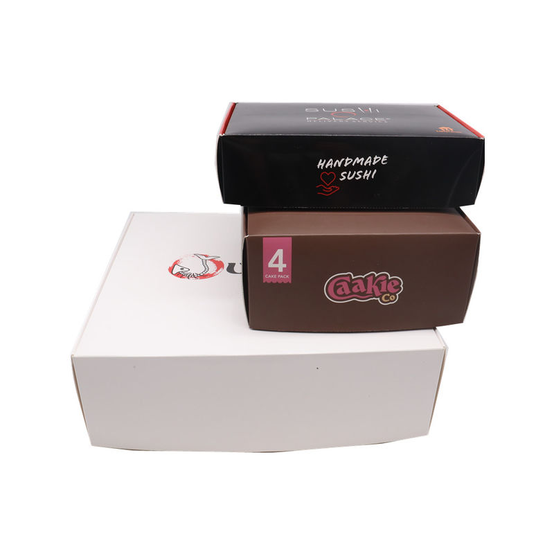 กล่องกระดาษซูชิ CMYK พร้อมฝาปิด 300-400gsm กระดาษแข็งสีขาว